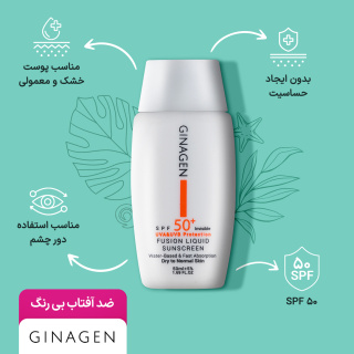 ضد آفتاب ژیناژن با SPF50 بدون رنگ، گزینه بسیار مناسب برای پوست خشک و نرمال است. این کرم ضد آفتاب میتواند از پوست شما در برابر اشعه مضر آفتاب و رادیکالهای آزاد موجود در هوا محافظت کند و مانع از بروز آفتاب سوختگی، التهاب، بیماریهای پوستی و مهمتر از همه ایجاد چین و چروک شود. فرمولاسیون این کرم بسیار خوب و کاربردی بوده و کاملا ضد حساسیت است. از این کرم میتوانید در نواحی دور چشم هم استفاده کنید. بافت سبک و جذب بالای ضد آفتاب ژیناژن از دیگر ویژگیهای بسیار مهم این کرم است که بهراحتی جذب پوست میشود و چربی اضافهای را روی پوست باقی نمیگذارد. حجم کرم ضد آفتاب بدون رنگ ژیناژن 50 میل بوده و محفظه بسیار سبک از جنس پلاستیک دارد که حمل آن بسیار راحت است. در نتیجه میتوانید روزانه از این کرم ضد آفتاب استفاده کنید.