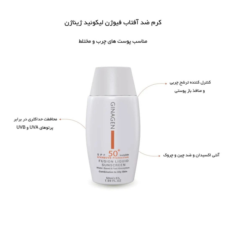کرم ضد آفتاب ژیناژن بی رنگ پوست چرب و مختلط