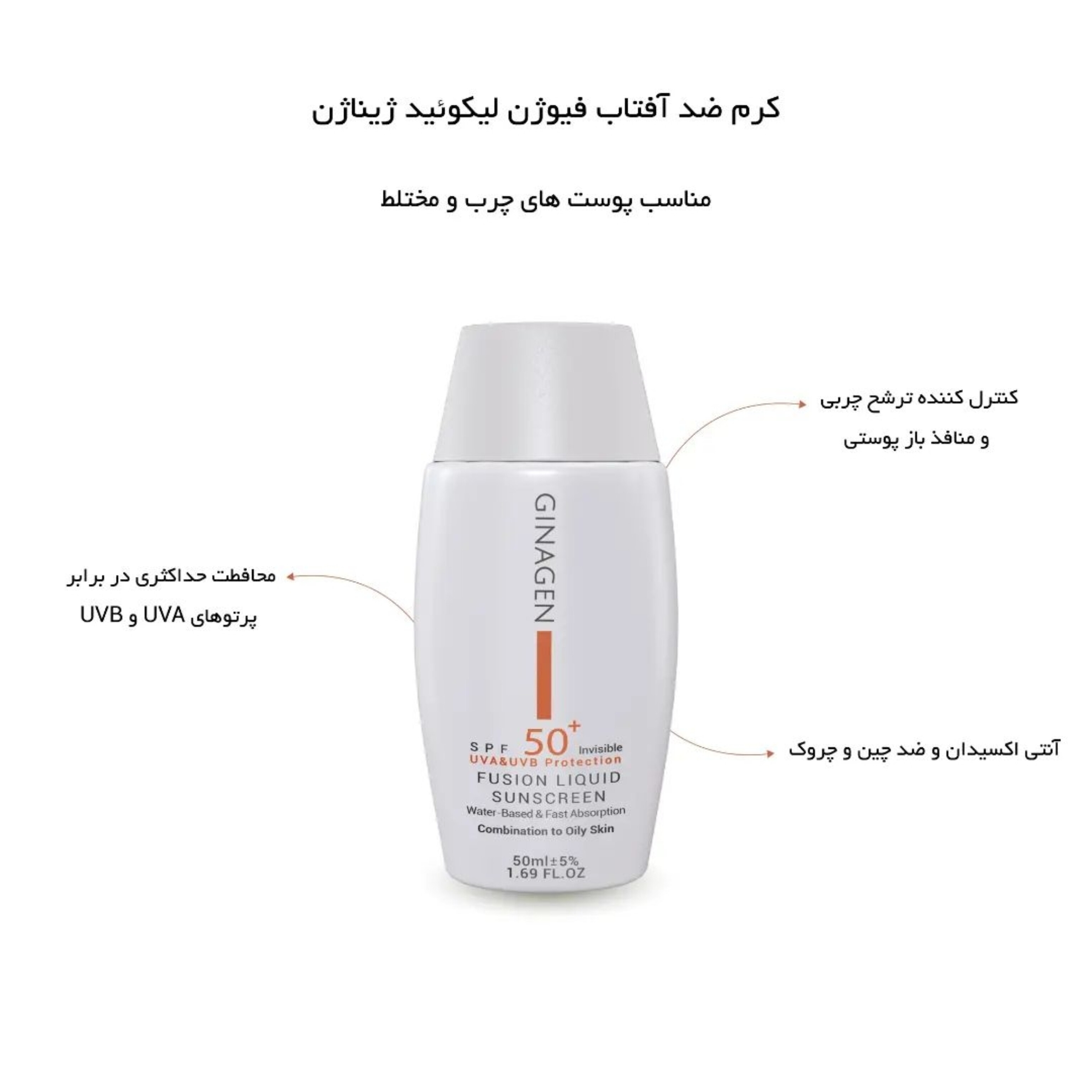 ضد آفتاب ژیناژن بی رنگ پوست مختلط و چرب حجم 50 میل