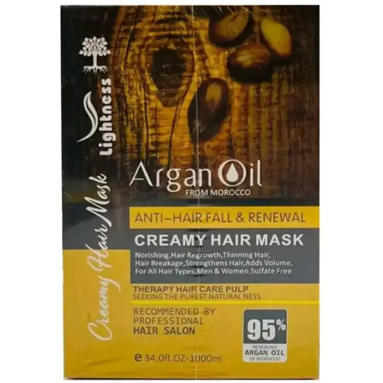 ماسک مو فاقد سولفات روغن آرگان لایتنس موها را به صورت عمقی آبرسانی نموده و با تامین و تغذیه موها سبب احیا و بازسازی ساختار مو میگردد. این ماسک مو آرگان لایتنس گرههای مو را از بین برده و شانه پذیری مو را افزایش میدهد و از ریزش مو ها جلوگیری میکند. در فرمولاسیون ماسک مو فاقد سولفات لایتنس از روغن طبیعی آرگان استفاده شده است و برای انواع مو مناسب می باشد. ماسک مو کرمی لایتنس به دلیل دارا بودن روغن آرگان و ویتامین E ، باعث درخشندگی و شفافیت موها شده و آنها را از حالت کدر بودن خارج میکند.