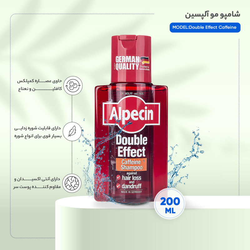 شامپو آلپسین دابل افکت Alpecin Double Effect Caffeine Shampoo، شامپویی تخصصی از برند آلمانی آلپسین است که با هدف درمان همزمان شوره سر و ریزش مو طراحی شده. این محصول با ترکیب دو عملکرد کلیدی در یک شامپو، بهعنوان یکی از مؤثرترین راهکارها برای آقایانی که از هر دو مشکل رنج میبرند شناخته میشود. در ادامه، به بررسی دقیق این محصول از منظر علمی و کاربردی میپردازم.