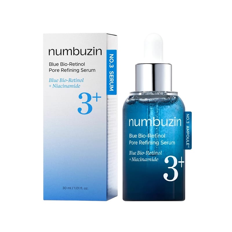 سرم رتینول آبی شماره 3 نامبوزین Numbuzin No. 3 Blue Bio-Retinol Pore Refining Serum یک سرم تخصصی از برند کره ای نامبوزین است. این سرم با تمرکز بر روی کاهش ظاهر منافذ، بهبود بافت پوست و مقابله با علائم پیری طراحی شده است. این محصول از ترکیبی از ترکیبات فعال نوآورانه استفاده میکند تا بدون عوارض جانبی رتینول سنتی، به نتایجی مشابه دست پیدا کند.